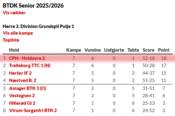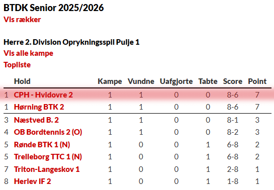 CPH – Hvidovre 2 vs. Trelleborg TTC 1